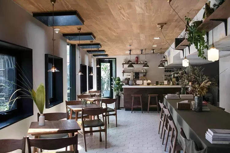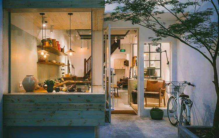 这家概念生活美学店开在既繁华又古老的泰康路,采用原始的水泥色和亚黑色作为店面的装修基调,店内却是一股清新的北欧森林氛围,源于自带的柚木色家具,大到餐桌,小到餐盘。