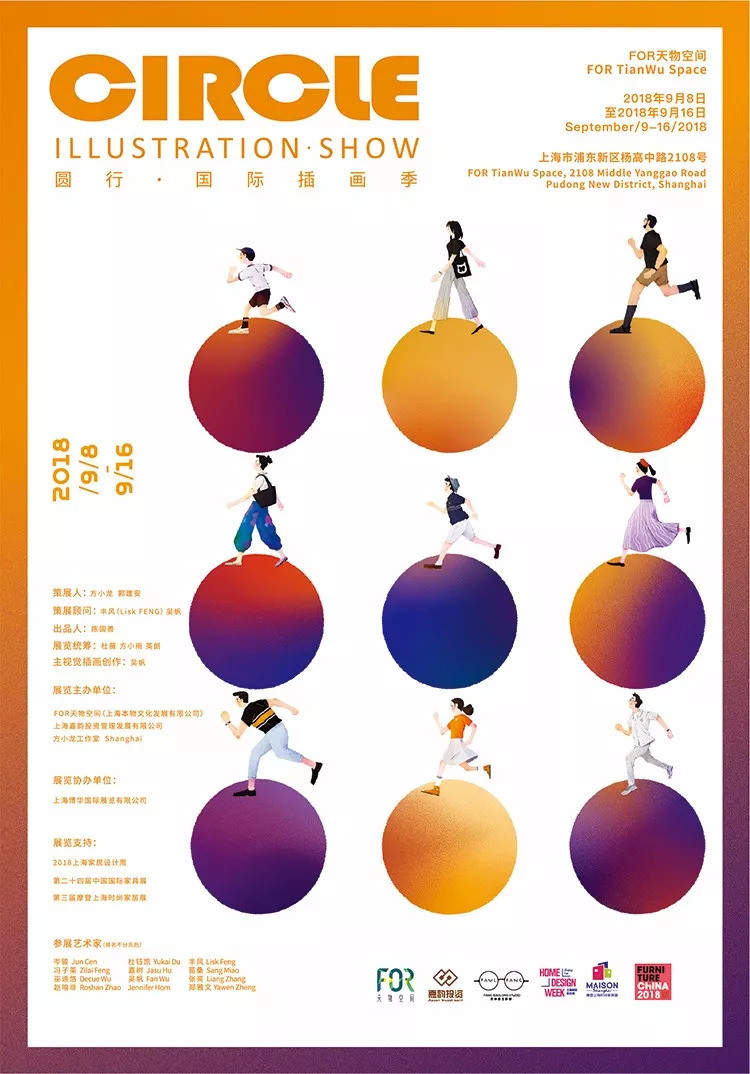 FOR天物空间联合艺术家、策展人方小龙以2018上海家居设计周、第二十四届中国国际家居展、第三届摩登上海时尚家居展为强大品牌背书,共同联手打造以插画艺术家为主体的展示平台——CIRCLE · Illustration SHOW 圆行·国际插画季。
