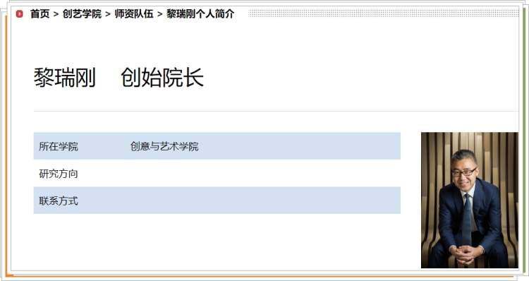 创意与艺术学院页面的介绍文字显示,该学院旨在通过融汇艺术与科技的课程与活动,为年轻学子搭建开拓性研究、实验、交流、成长和突破的孵化平台。