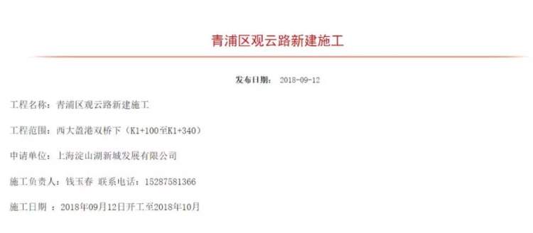 上海青浦小伙伴注意了,观云路正在施工,请绕行!