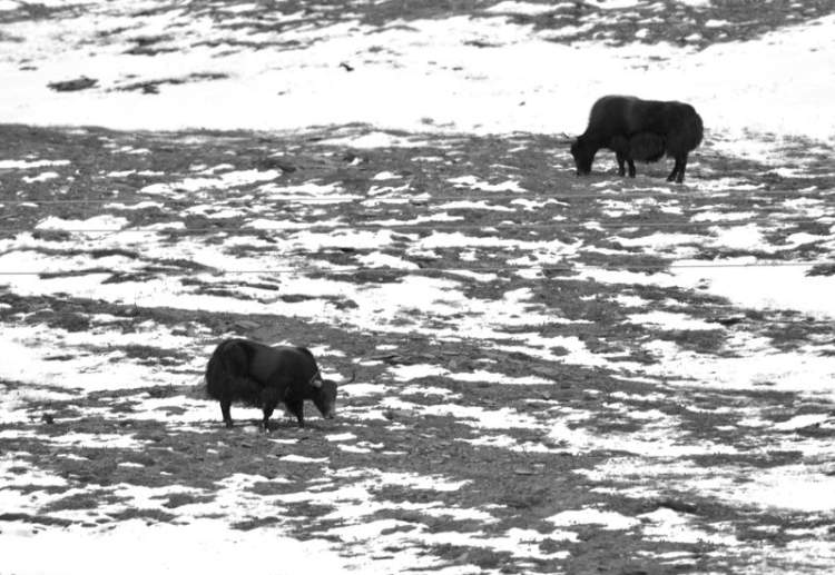 就在道路边二三十米开外之处,这些可爱的生灵正旁若无人地悠闲吃草,一会儿又耐不住好奇,伸长脖子凝视着这群远道而来的“不速之客”。