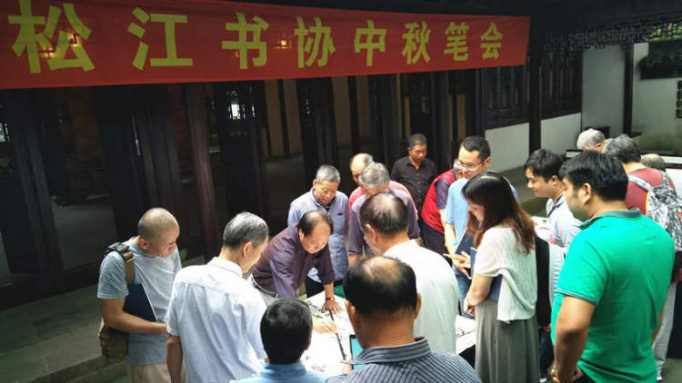 中秋笔会是公园与松江区文联、区书协每年共同举办的书法交流展示活动,已连续举办七届,每年都吸引众多书法爱好者纷纷慕名而来,通过动、静结合及观、赏、评、学、探的形式,把笔会打造成交流学习、共促提高的有效平台,以此进一步配合松江建设以“书香之域”、“书画之城”为特色的文化名城。