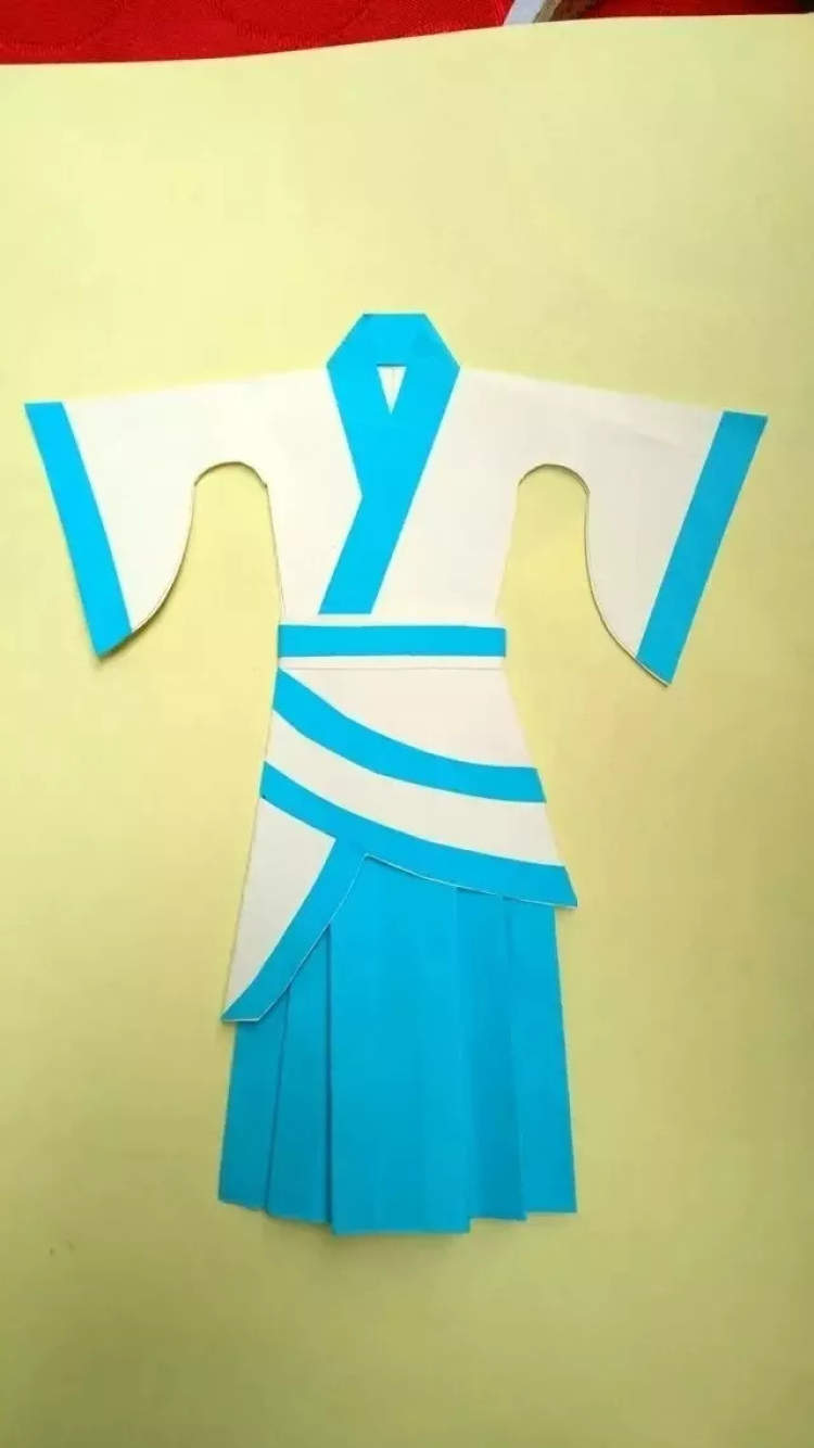 市民游客可在老师的引导下通过彩纸裁剪的方式,制做纸汉服,心仪作品可免费带回家。
