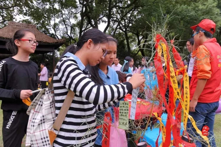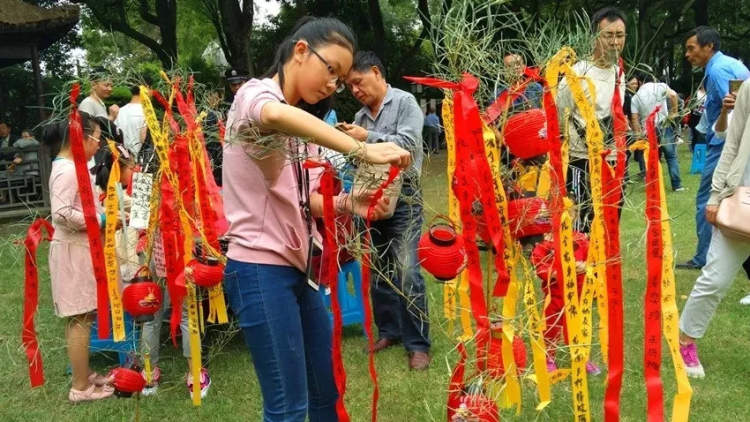 市民游客可在工作人员处领取许愿条一张,在上面写下自已的中秋愿望,然后系在指定的许愿树上,心诚则灵哦!