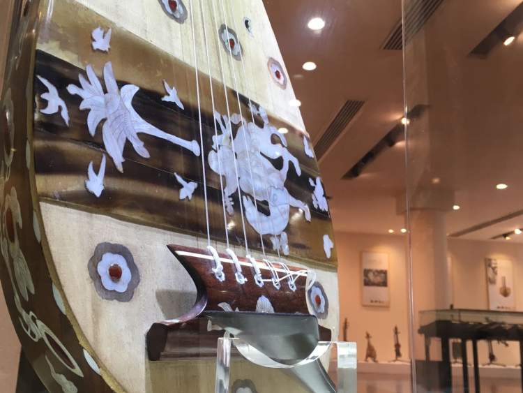 这是展览中最漂亮的两件乐器,尽管是日本正仓院所藏名作的复制品,仍不掩其倾国倾城的美色。