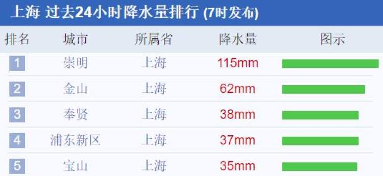 在过去的24小时,上海各地区的雨量排名是这样的: