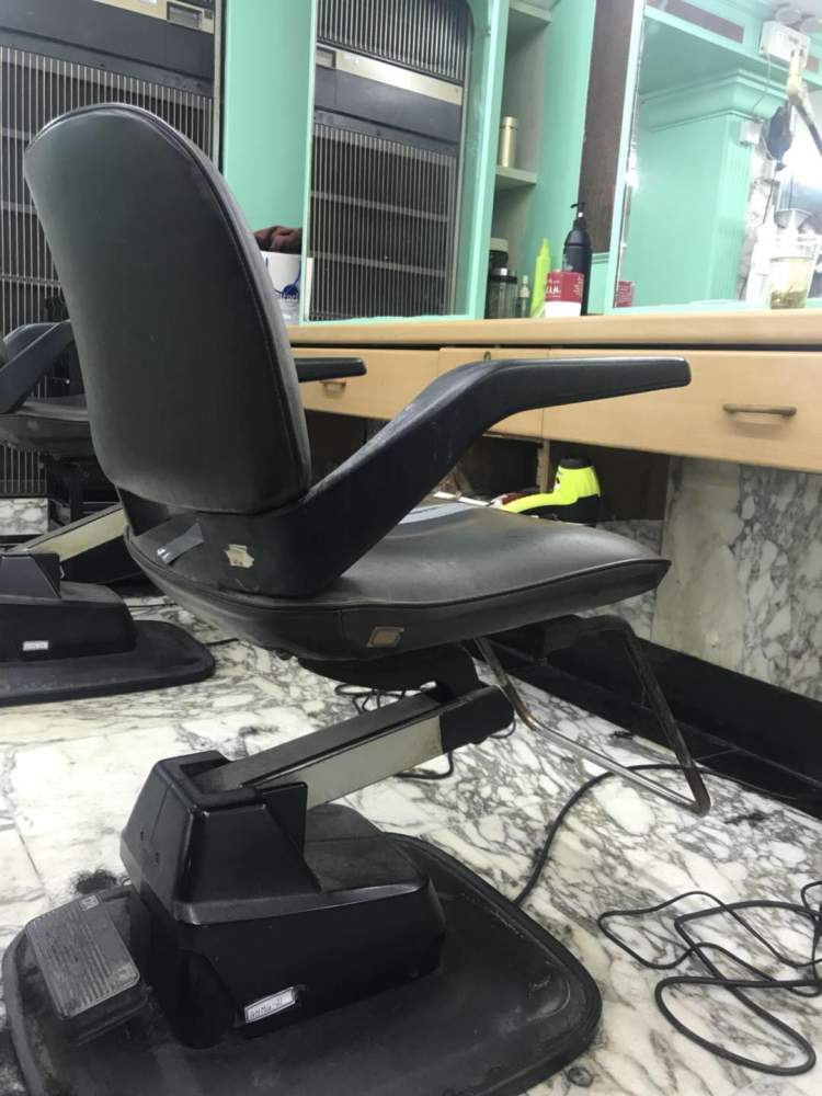 在这家理发店里,你能够很方便地找到老式理发店遗留的痕迹。比如洗头用的还是“弯腰式洗头”,而不是现在理发店流行的“平躺式”。老式理发椅虽然有些破旧,都是专门定做的。还有挂在墙角边专门用来刮剃刀的“打刀布”,残破的身躯透露着岁月的气息。