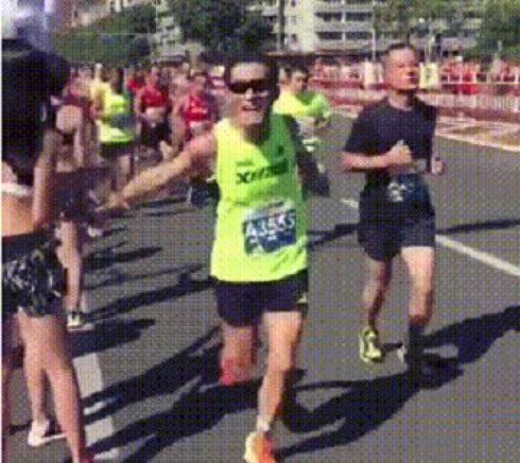 从已曝光的视频来看,这名号码为"A3555"的参赛者在跑到终点时,突然向路边加油的女志愿者伸出魔爪,之后竟然露出得意的笑容。