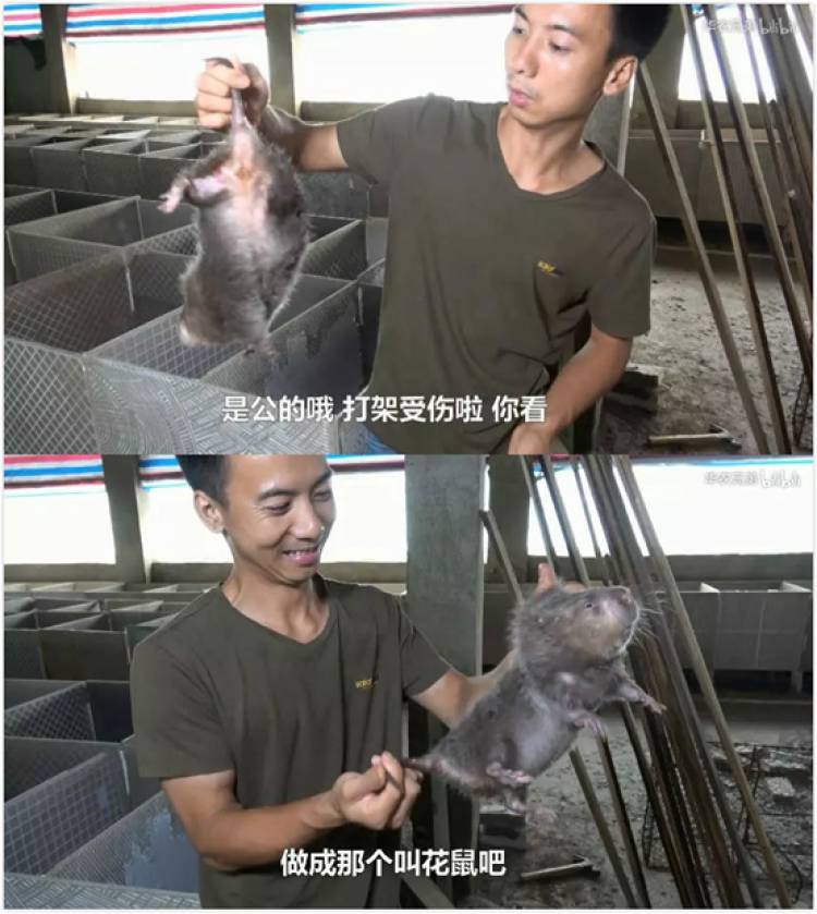 横竖都要被吃的竹鼠就这么被亲手养大它们的爸爸烤得油汪汪,嘎嘣脆↓