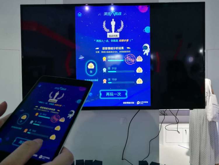 一个游戏是“演技大挑战”,体验者需选择一种情绪,并念出与该情绪对应的一段台词,通过自己的“演技”来“骗”过A I的语音情绪识别方能过关。