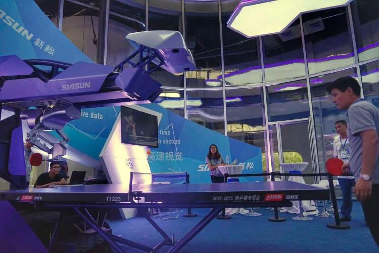 ■乒乓球机器人庞伯特。图片来源:朱影影
