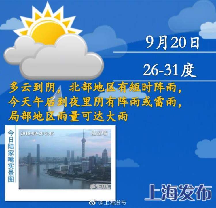 果真是披着黄梅天外衣的假秋老虎 明天就“归山”了 2018-9-20 这两天天气返热,是秋老虎来袭?不是噢!因为按气象意义上的标准还达不到秋老虎的程度,而且大家不用太担心,因为冷空气就将来解救大家!今天多云到阴,北部地区有短时阵雨,最高温度31度,最低温度26度。今天午后到夜里阴有阵雨或雷雨,局部地区雨量可达大雨。 来源:周到上海 作者:周到君 赞一个 (0)