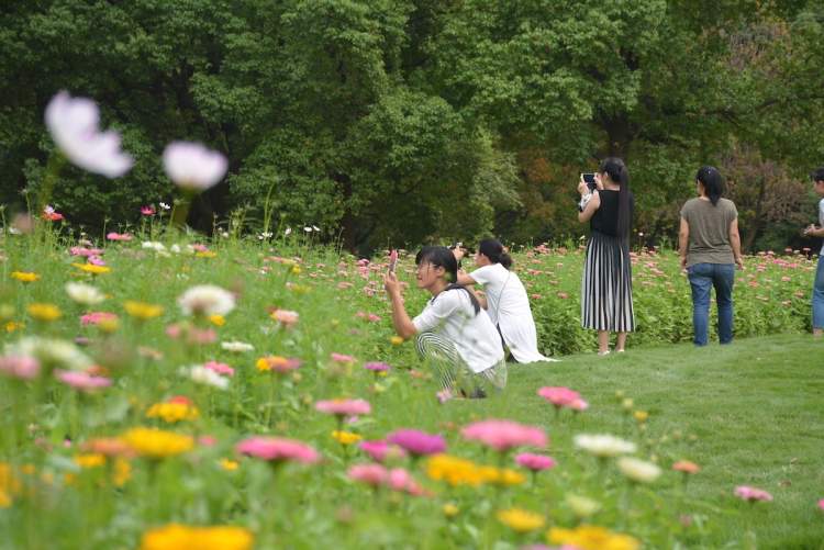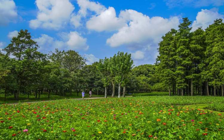 还记得共青森林公园去年国庆期间盛放的近5000平方米的缤纷花海吗?今年,这片花海又将要强势回归!近日,共青森林公园除了在东门生态区籽播了近5000平花海后,又在绿茵半岛上籽播了近1000平方米的花带。这两片花海目前已绽放3成左右,预计中秋、国庆前后将达到盛花期,花期将一直持续到进博会期间。