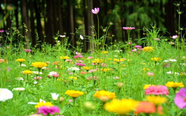 共青森林公园的这片花海由硫华菊、孔雀草和百日草三种菊科不同属的草本花卉组成。三种草花均原产自墨西哥,后引进中国,深得众人喜爱。百日草还是第一株在外太空开放的花朵,于2016年年初由美国宇航员斯科特·凯利在NASA空间站中培育而成。花海配置色彩丰富,包括粉红、玫红、白色、红色、水晶条纹、橘黄色等多种颜色,其中孔雀草主要为金黄色,百日草和硫华菊则由多色混种而成。三种草花花大、色艳,届时将成为一道亮丽的风景,让前来游玩的游客身心愉悦。