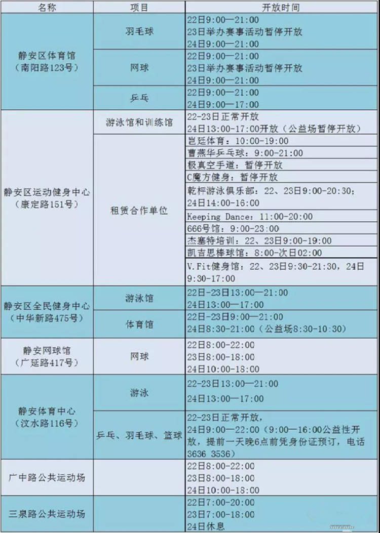 上海的这些体育场馆中秋节也开放哦~约起来! 2018-9-20 平日工作繁忙,想活动活动筋骨,运动一下也没时间。 不如趁着假期放松一下吧! 中秋节,静安区的这些场馆会开放哦…… 来源:周到上海 作者:周到君 赞一个 (0)