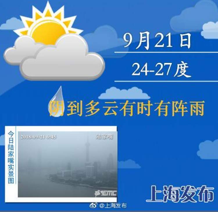 嫦娥说,让大家过个有秋天味的中秋吧 亲,今早的清凉收到了么 2018-9-21 受北方南下冷空气影响,本市今日阴到多云有时有阵雨,明天阴到多云有分散性短时阵雨,气温降至24~27℃。周六开始本市将开启一段以多云为主的天气,而周日到下周中气温适宜,早晚有凉意,最低气温将降至20℃上下,最高气温回落至26~27℃。这意味着这个中秋假期,将“秋意十足”。 来源:周到上海 作者:周到君 赞一个 (0)