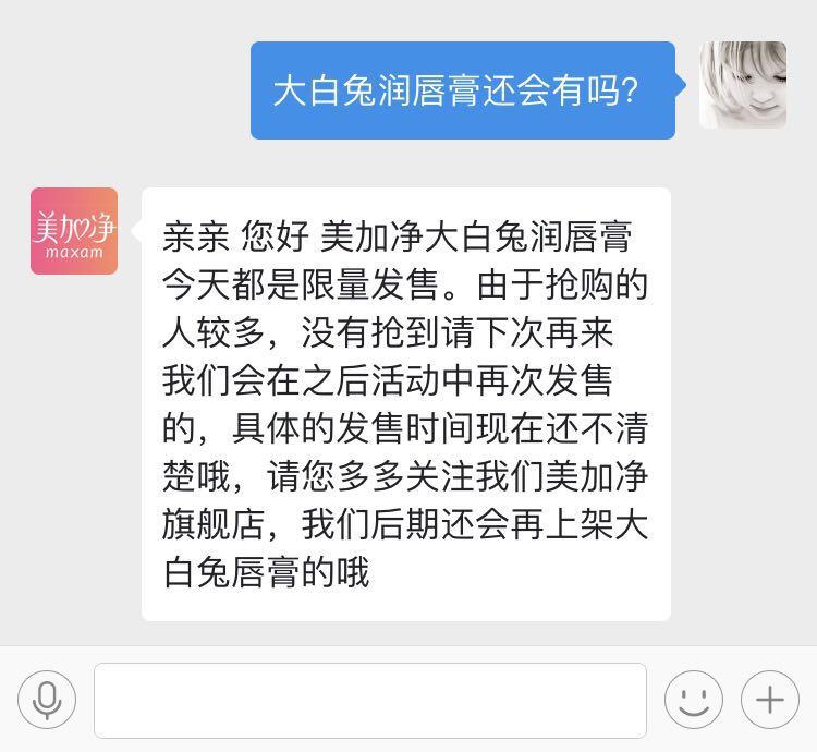 相关工作人员告诉周到君,本来9月21日的加售是没有的,但没想到大家9月20日对美加净大白兔奶糖味润唇膏的反响那么热烈,于是内部紧急协调库存,安排工厂加班,才有了今天这一批,售完即止。