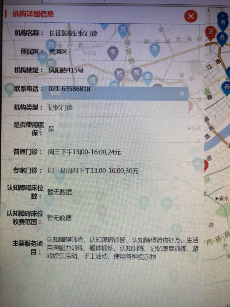 周到君点开了黄浦区的长征医院,有相关的记忆门诊。