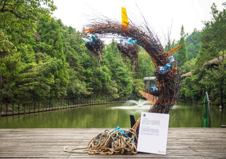 同时,结合9月15日“世界清洁地球日”的契机,裸心集团还联手国内青年艺术家毛雪蕾,共同打造了题为《心巢》的装置艺术作品。艺术家利用莫干山当地的自然环境就地取材,并结合常见的废弃物件进行创作,用“心巢”来比喻我们赖以生存的共同家园,以启发人们保护地球的意识。《心巢》将在裸心谷对外展示为期一个月。