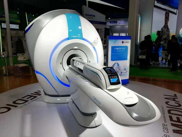 美时医疗的展位,一台核磁共振设备十分引人注目。
