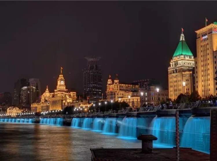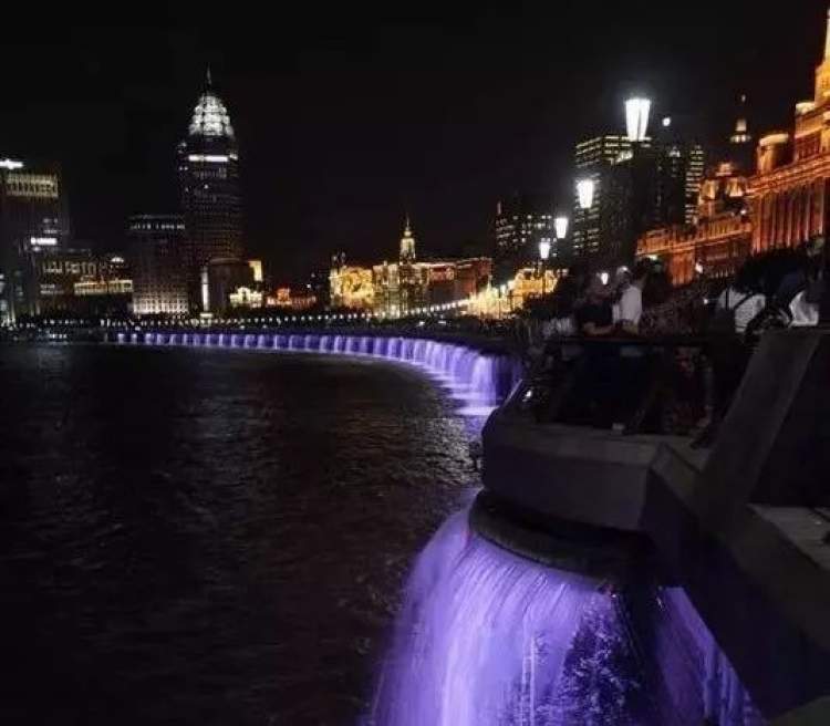 黄浦江水沿着堤岸化身一道道飞瀑