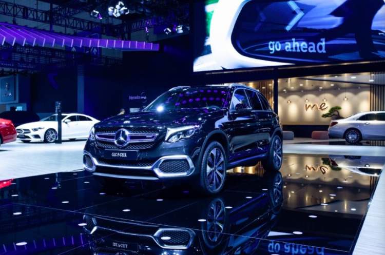 记者在奔驰的展台上看到,作为主打展品之一的梅赛德斯-奔驰GLC F-CELL被置于“C位”,除了展示该车型的华丽外表,更重要的,还有其新一代的燃料电池技术。