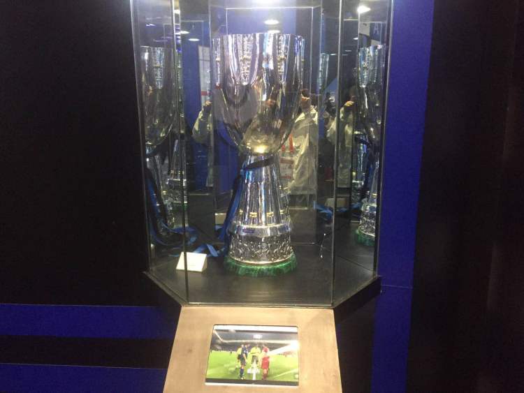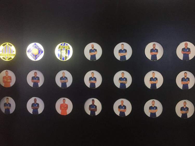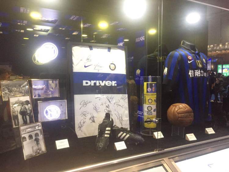 为了吸引目光,国米做了一面放置24位现役球员照片和签名的展示墙,包括其现役队长伊卡尔迪,此外,还有托尔多签名的战靴、国米元老袖标、百年纪念赛用球……