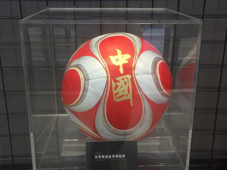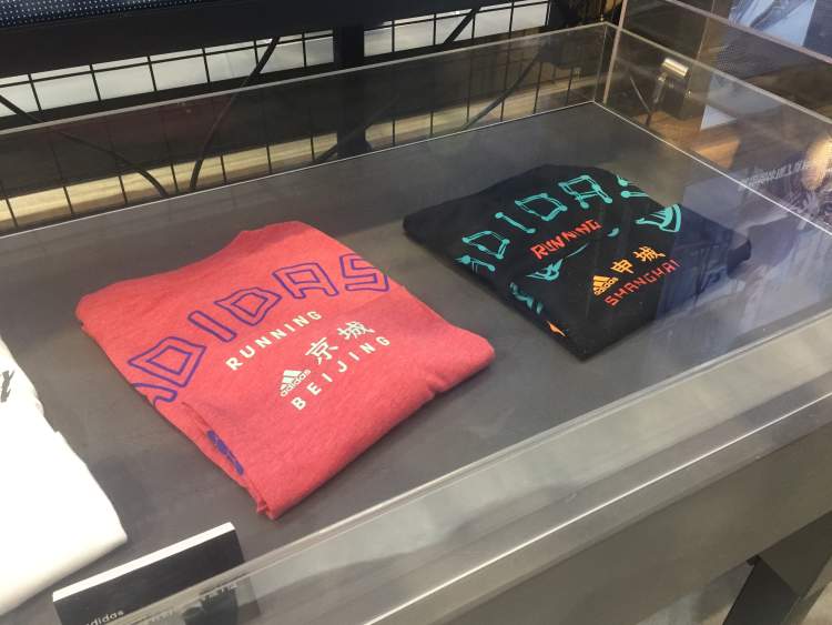 随其一起展出的有北京奥运会专用足球、阿迪与中国雕塑家联手打造的“忠义信勇”战靴,还有四款和不同城市的当地艺术家合作设计的城市专属T恤,其中属于上海的衣服以黑色打底,并印着“申城”。