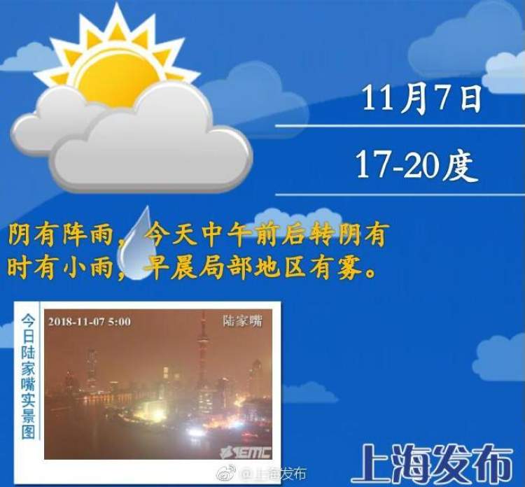 冷空气包邮区明日送达 周末降温将触及最低温10度 2018-11-07 今天中午起阴有时有小雨,偏东风3-4级,气温较昨日相仿,17-20℃。除了周五(9日)有一天多云的天气外,未来一段时间上海还是阴阴雨雨的天气。明天(8日)随着北方冷空气影响,夜间雨止转阴到多云,但气温将有所下降,同时风力增大到4-5级西北风。预计周五、周六的最低气温只有11-12℃(郊区7℃左右)。 来源:周到上海 作者:周到君 赞一个 (0)