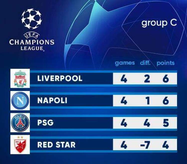 本轮过后,C组形势胶着。原本预期中的3强1弱格局并未出现,4支球队最多只相差2分:利物浦和那不勒斯同积6分,巴黎圣日耳曼5分,贝尔格莱德红星4分。
