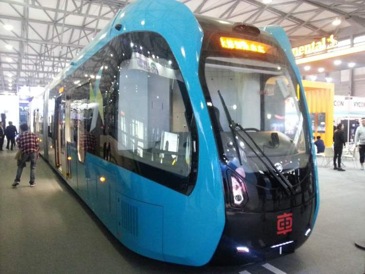 记者发现在“中车株洲”的展示区域内,一辆车身特长的“巨无霸”公交车吸引着大量参观者进行“围睹”。只见其车头及车身用蓝、黑色镶拼,看上去富丽堂皇,“颜值”极高。这辆由中国中车株洲电力机车生产的公交车,介于传统的轨交列车和路面公交车之间,属于“跨界”创新产品,大致属于公交“中运量”列车序列,却比上海目前长度达18米的71路中运量车还要长。其载客可达307人,是沪上最常见的普通12米长公交车的三倍载客量,是18米长公交车载客量的两倍多。