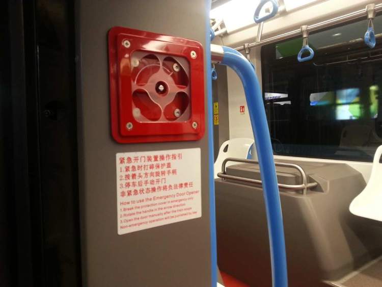 记者还发现,车厢靠门处还设置有像地铁一样的红色外观的“紧急开门”装置。车辆行驶时,一旦有紧急时刻,乘客可以打碎保险盖,按照箭头方向旋转手柄,此刻车辆就会停下,车门可以用手拉开。同时,上车的部位还设置有手机扫码付费装置以及银联卡等付费操作区。