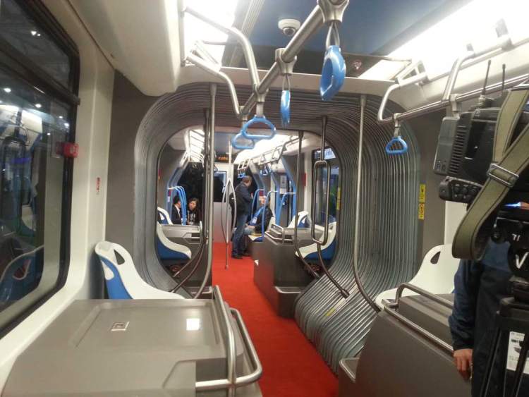 据记者观察,“巨无霸”车厢内的站立空间较大,乘客座位相对较少,只有40个,这是为何?对此,中车株洲电力机车区域总监陈志解释说,这主要是考虑到城市公交车的乘客需要特点,就是说和地铁列车一样,站立的空间比较大。