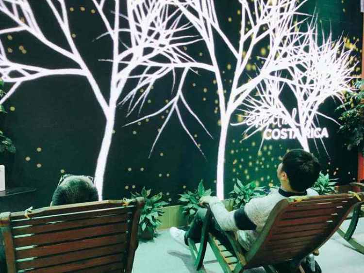 还没迈入哥斯达黎加馆,就能问到一股特别的味道。了解后才知道,这是当地森林的味道,是由当地的一家香料公司费尽心思模拟制作出来后,在现场予以挥发,所以,整个哥斯达黎加馆内弥漫着一股好闻的味道。