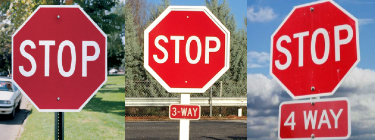 三、熟悉单向和多向“STOP”停牌功能。行驶至无红绿灯路口时,务必减速并观察有无“STOP”停牌。如有停牌,必须停车。同时,辩识“STOP”下方有无“3 WAY”或“4 WAY”标注。如有标注,按照先停先行确保安全的原则行驶。如无标注,即使垂直方向无车辆,也必须停足3秒,确保安全后通行;如垂直方向有车辆,须静候并在确保安全的情况下通行。