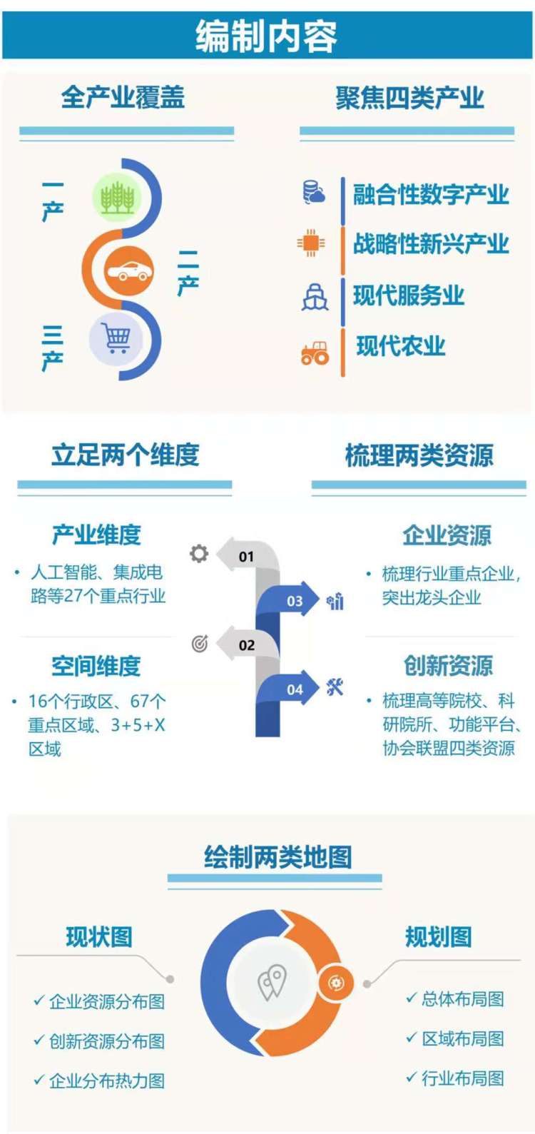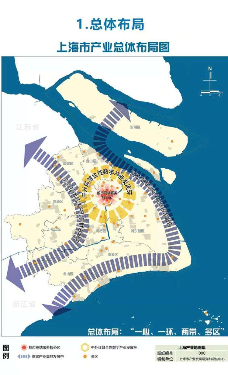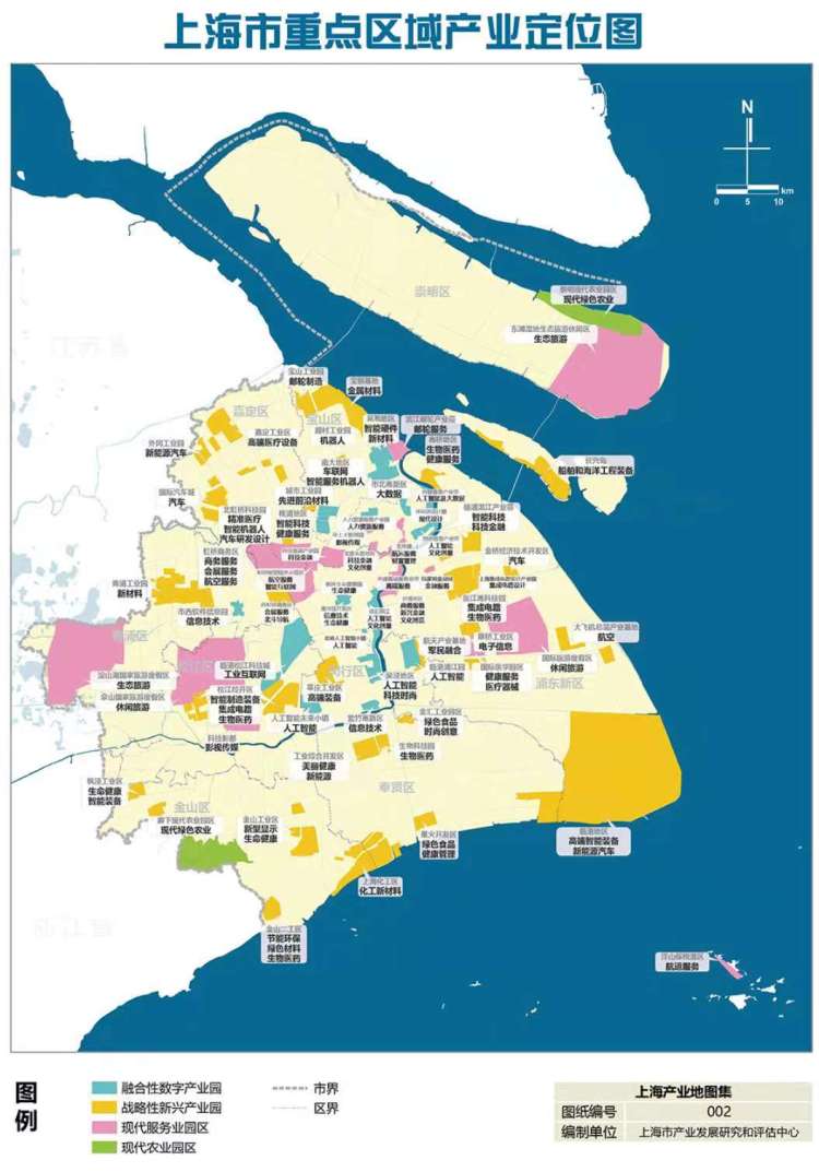 为进一步优化产业定位和空间布局,上海从一二三全产业链角度,编制了上海市产业地图。重点聚焦融合性数字产业、战略性新兴产业、现代服务业和现代农业,从空间和产业两个维度,形成现状图和未来图。