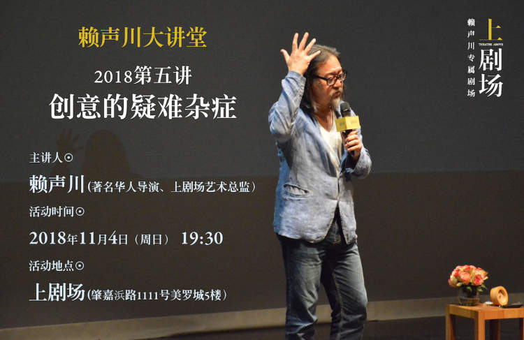 2018年的五次讲堂,已经让“赖声川大讲堂”已成为上剧场重磅驻场活动之一,旨在通过上剧场这个平台与大家分享创意的宝藏。日前,赖声川为观众带来今年最后一堂创意课,为大家讲解创意的疑难杂症,这堂课不仅是今年大讲堂的结尾,更是明年新一轮讲堂的开端。