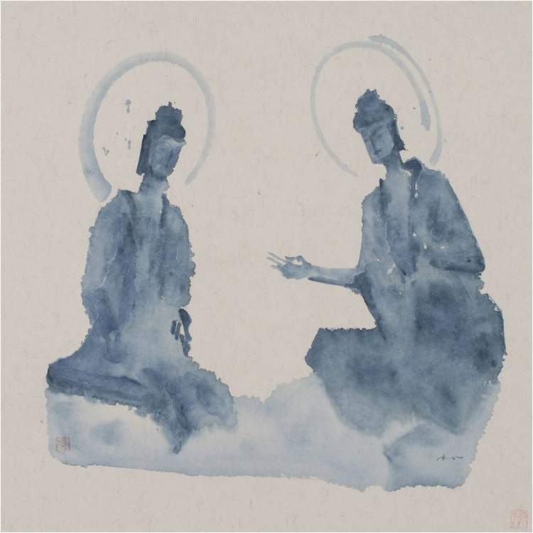 樊帆是西安美院环艺系执教,设计是其主业,中国画是他在家学熏陶下的艺术修养。他的国画不拘泥于某种固有技法,也没有被佛像的外在形态所左右,他从感受意境出发,直取意象。热播电视剧《那年花开月正圆》是樊帆母亲根据她的家史所写的传记,这也使得樊帆在水墨创作中有了更多的思考与执念,使他在对时间流失的敏感性上有了一种天然的积淀,艺术给了在超现实环境下,疲惫而脆弱的人心一个灵魂的去处。