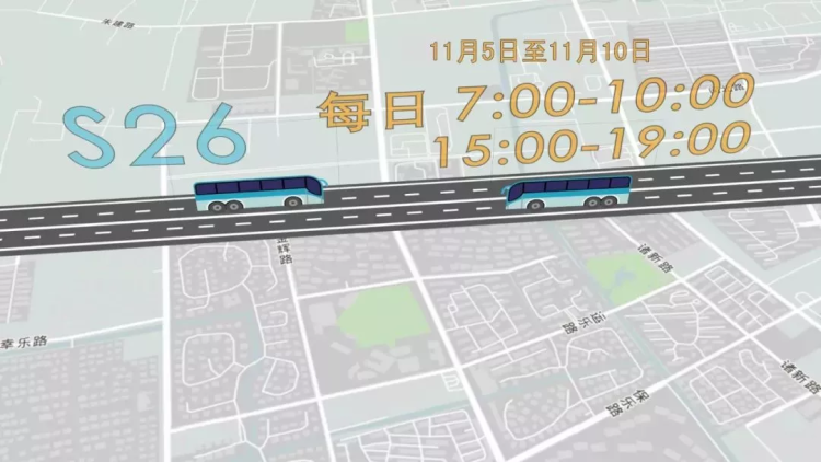 7:00-10:00,15:00-19:00,S26入城段(收费站-嘉闵立交)进博会公交专用道限行;