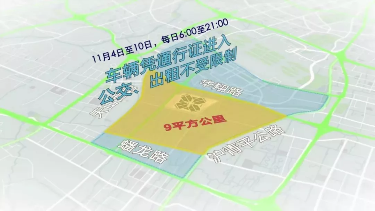 6:00-21:00,天山西路、蟠龙路、沪青平公路、华翔路合围区域以及嘉闵、建虹、崧泽高架部分出入口,车辆凭证通行(公交、出租不受影响);