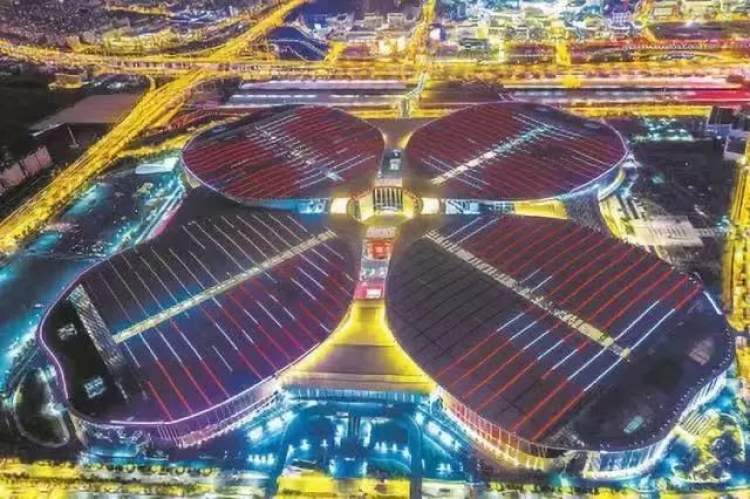 快看!夜幕下的国家会展中心犹如一朵绽放的“四叶草”,格外大气美丽!(真想好好夸一夸,进口博览会让上海越来越嗲啦!)