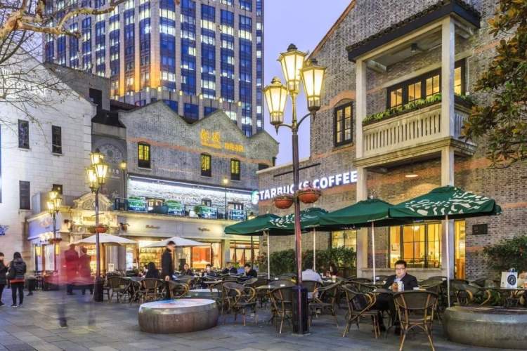 新天地的建筑群外表保留了当年的砖墙、屋瓦,而每座建筑的内部,则无一不体现出现代休闲生活的气氛。
