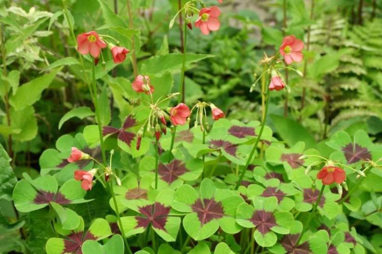 原产墨西哥的宿根植物,因为叶片中间有铁锈色斑纹,又叫铁十字酢浆草。也许你在哪个礼品店里买到的“幸运草”,就是由四叶酢浆草叶片做的,毕竟,没有那么多的幸运草可以供给工厂的流水线制作大量的礼品。