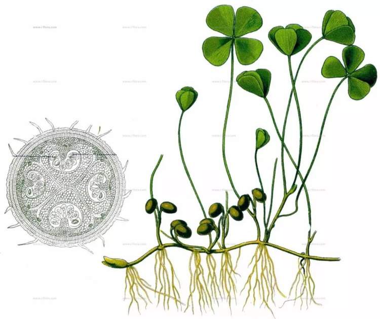 又名田字草,广布于我国长江以南各省区,世界温带热带地区也有分布。常生于水田或者沟塘中,被当做农业生产中的杂草。