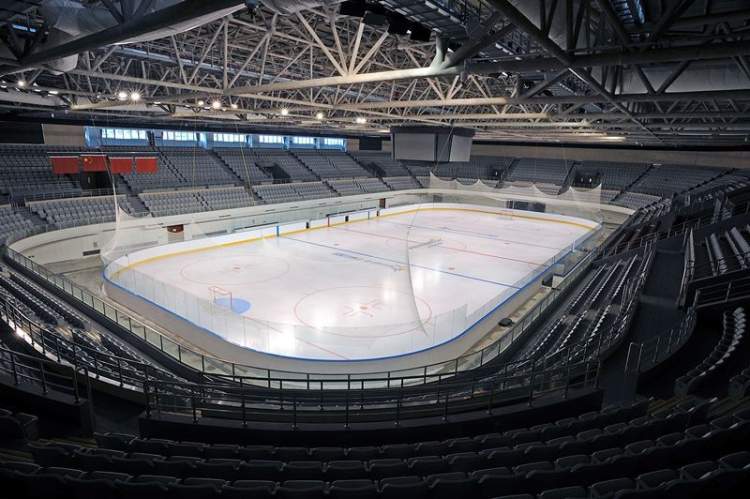 一片是二层的31米×60米标准比赛场地(冰上面积约1860平方米),主要用于举办冰球、短道速滑、花样滑冰等国际国内重要赛事,配备观众座位席4464个。