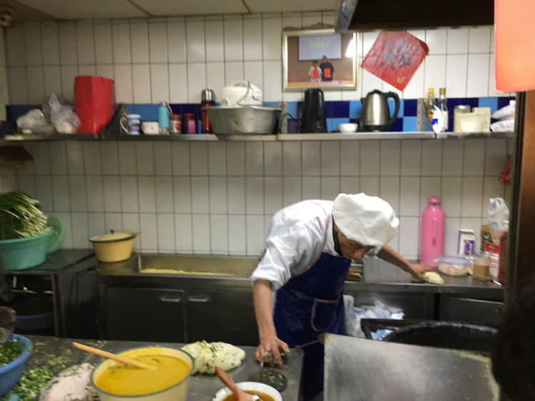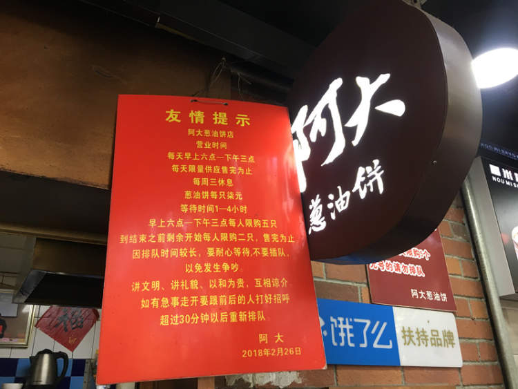 临别之前,路过阿大葱油饼,看着阿大弯着腰在老炉台前烧制葱油饼,铁板上饼子滋滋啦啦地煎着,葱香四溢,门口围着不少垂涎欲滴的食客,小编坚信:总有一天我也会吃到!