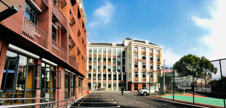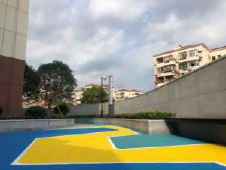 枣阳片区虽然能保留了社区学校原有的外部结构,但在环境设施上做了全方位的提升。在整体建筑的周围沿河岸新增了健身步道,与相连的篮球场等体育设施以及优美环境协调一体,居民来片区享受各项服务外,也可在此散步休闲。