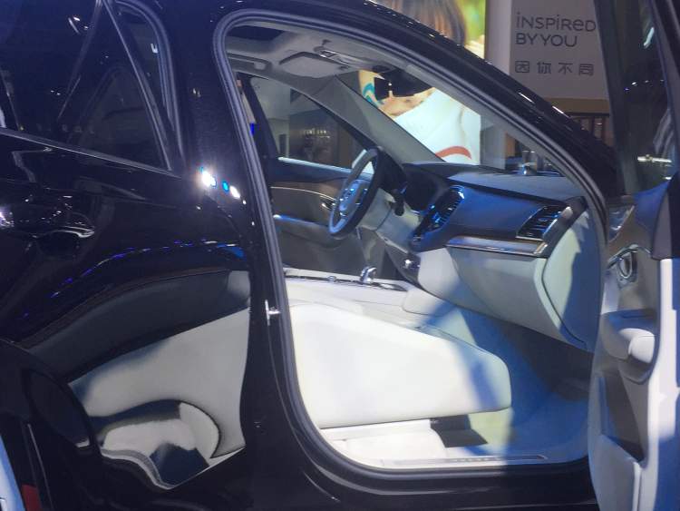 汽车馆里沃尔沃的展台上,一位观展员对着同行的人说:“正常情况下很少坐特别多的人,这样挺好的。”