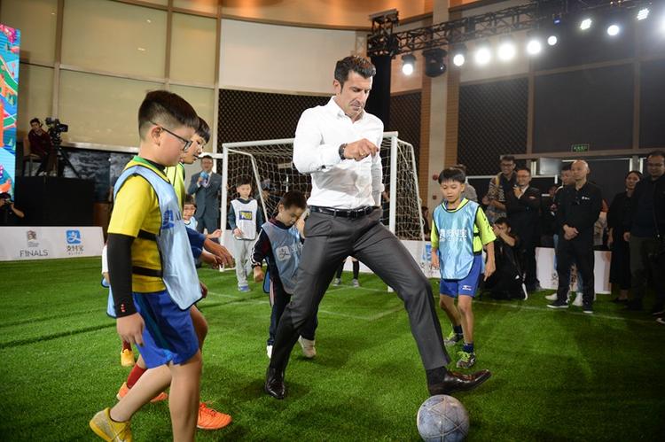 暖场环节,两位大叔——葡萄牙球星路易斯·菲戈和井贤栋和一群孩子们展开了一场友谊足球赛,他们来自孟加拉、泰国、马来西亚等多个国家,而他们所代表的,正是支付宝的出海路径,借用井贤栋的话来说,这场友谊赛,就是一家人在踢球。