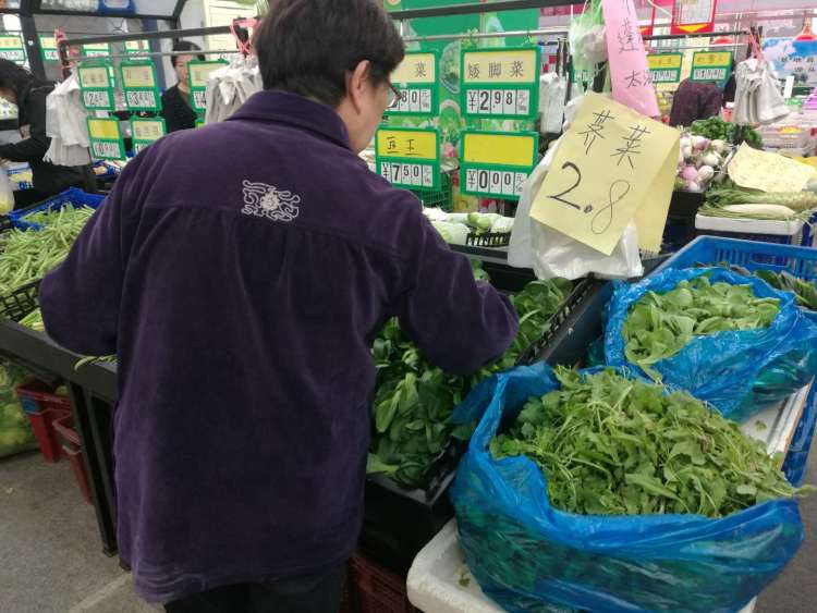 周到君比较宁海东路、台湾路、昭通路、大沽路、人民路等七八个菜场一天的菜价情况,发现上午买菜,虽然新鲜、品种多,但菜价最贵,一般上午买比下午2至3点买要贵0.5至2元/斤。比如茼蒿,宁海东路菜场上午出摊时的售价是4-5元一斤,到了下午二三点售价是3-4元一斤。再比如台湾路菜摊,整个上午草头的售价都是4-5元一斤,但一到下午二三点就跌价了,卖价跌至3-4元一斤。